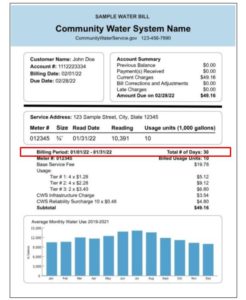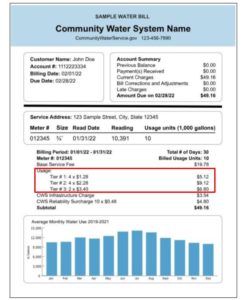 What a community water system charges, regardless of water use. It is meant to recover costs of utility overhead such as reading and maintaining meters, carrying out billing, or other expenses. All water users incur this fee, although prices may vary by account type, meter size, location, zoning type, or use. Sometimes, base service fees include a built-in amount of usage (e.g., the base service fee might include 5,000 gallons of water before additional usage charges are incurred). Source: Understanding Your Water Bill | US EPA.