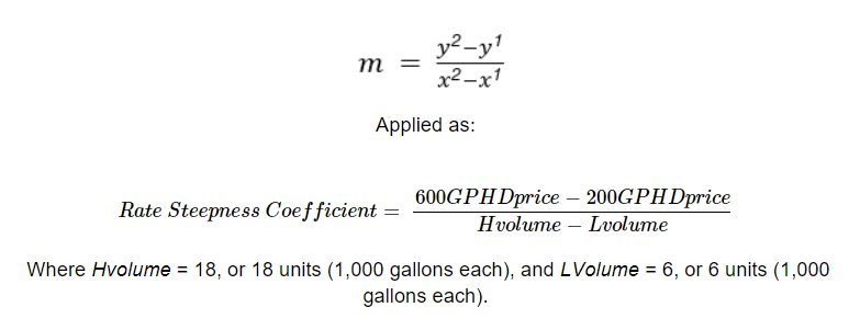 Data were collected by analyzing the most recent publicly available water rate document for each community water system (as of January 2022). Using the water rate document, estimates were made for the price of 6,000 gallons per month—representing low indoor water use, roughly 200 gallons per household per day (GPHD) over 30 days; moderate water use—12,000 gallons per month, or 400 GPHD; and high-water use—18,000 gallons per month, or 600 GPHD. Water rates used in these calculations were based on January 2022 pricing to account for only indoor water use. Single-family residential pricing was used for a three-quarter-inch meter. Following water price estimation, attempts were made to reach out to each community water system for price confirmation and comment. Seven of 37 utilities responded and their input was used to correct any miscalculations. All prices include base service fees and additional fees or surcharges, though stormwater, sewer costs, and taxes were excluded. To calculate the rate steepness coefficient, the slope formula was used to determine the slope between the price and volume of what we considered low monthly water use and high monthly water use.